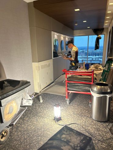 · Guestrooms – Accent vinyl wall covering, FF&E